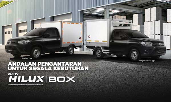 Toyota Hilux Box adalah varian dari truk pikap Hilux yang dirancang untuk keperluan kargo dan logistik. Mobil ini dilengkapi dengan kotak kargo di bagian belakang, yang cocok digunakan untuk mengangkut barang-barang seperti kardus, peralatan, dan banyak lagi. Hilux Box memiliki mesin diesel atau bensin yang bertenaga, sehingga mampu menangani beban berat dengan mudah. Interior Hilux Box dilengkapi dengan fitur-fitur kenyamanan dasar seperti AC dan audio system. Mobil ini juga dilengkapi dengan teknologi pintar seperti layar sentuh dan konektivitas smartphone. Hilux Box dikenal sebagai kendaraan yang tangguh dan dapat diandalkan, sehingga menjadi pilihan populer bagi bisnis logistik dan kurir.